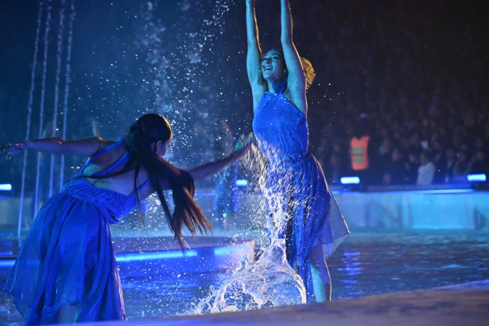 En el cuadro final del espectáculo, los bailarines utilizaron vestuarios de color rosa viejo, en alusión a la piedra granito, símbolo del 90° aniversario. Este detalle escénico representó la solidez y la eternidad del amor, reforzando el mensaje de permanencia y continuidad que caracteriza a la Fiesta Nacional de la Vendimia.