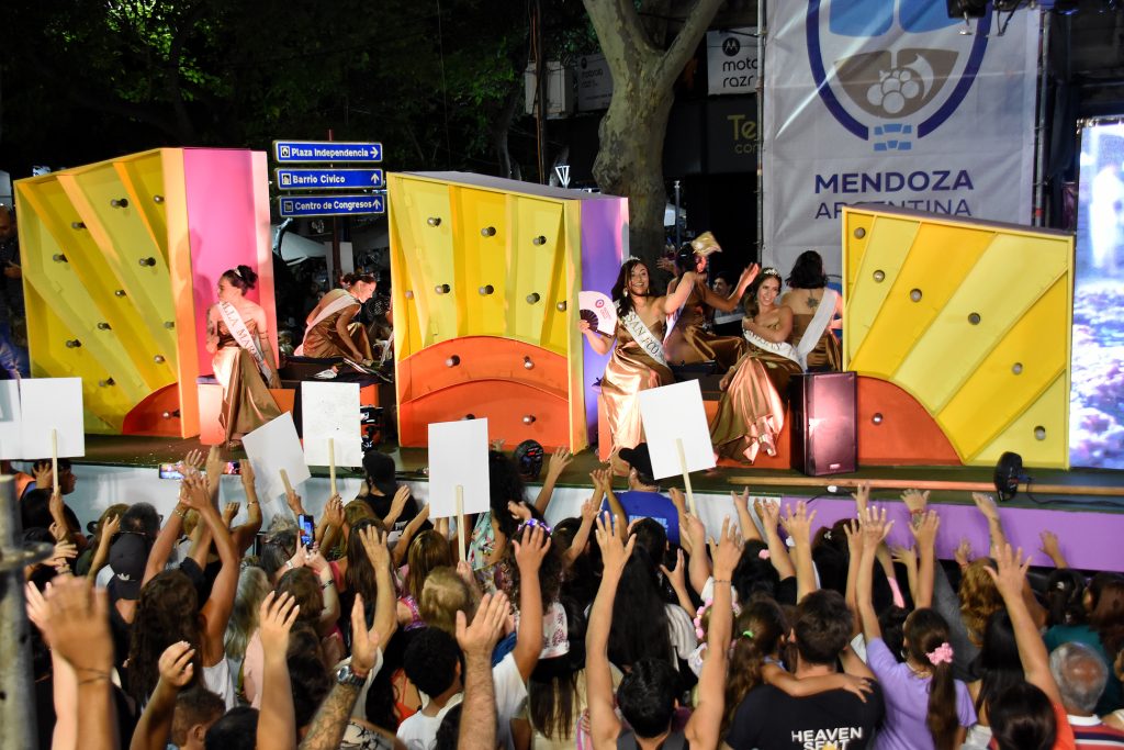 El tradicional desfile vendimial se realizará este 6 de marzo desde las 21 en el centro mendocino, con la participación de las 18 representantes departamentales y sus carros alegóricos. Al día siguiente tendrá lugar el Carrusel vendimial.
