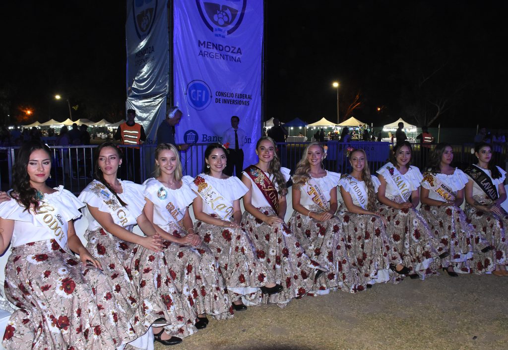 Luego, las candidatas departamentales, junto a la Reina y la Virreina Nacional, participaron del gesto simbólico de elevar canastos con frutos de cada rincón de la provincia, reafirmando que: antes de la corona, está la tierra; antes del aplauso, el trabajo; y antes del vino, la vid.