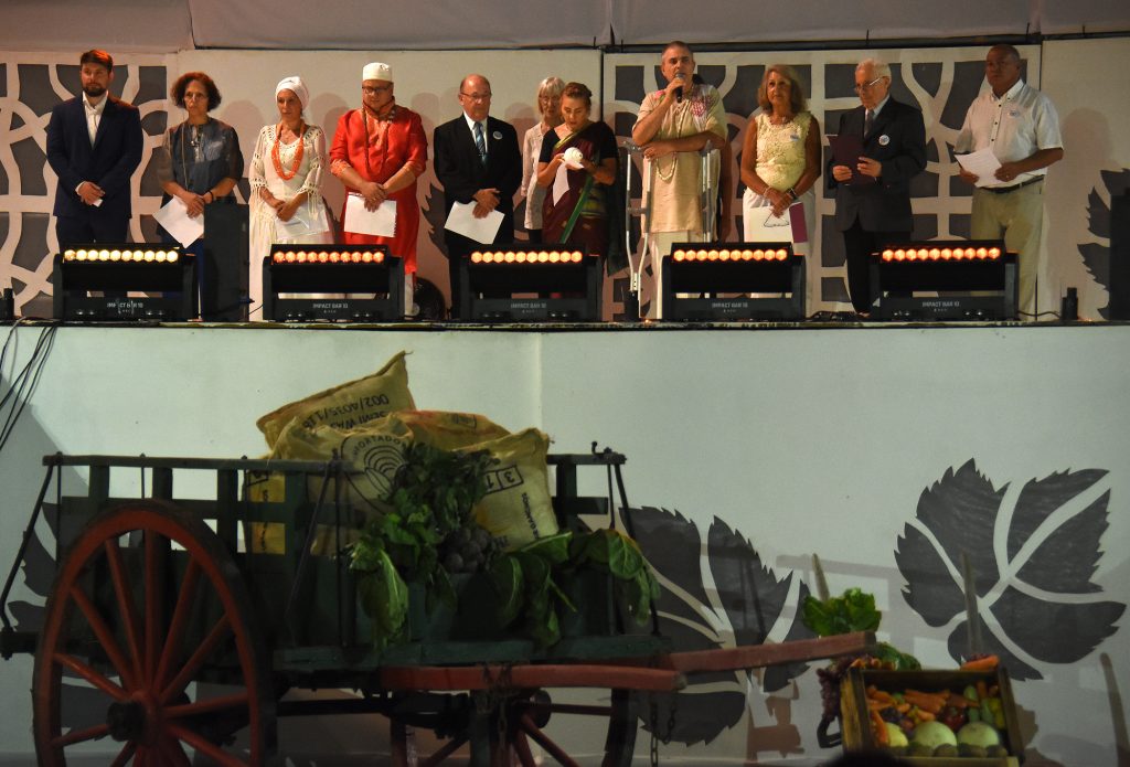 En el tramo protocolar se realizó la bendición ecuménica de los frutos con la participación de representantes de distintos credos. El Consejo Interreligioso de Mendoza estuvo integrado por la Sociedad Islámica Árabe de Mendoza; así como por la Sociedad Israelita de Beneficencia de Mendoza; también por la Sociedad Internacional para la Conciencia de Krishna y la Comunidad Budista de Mendoza; junto al Templo Africanista Ijoba Ti Bara Lana.