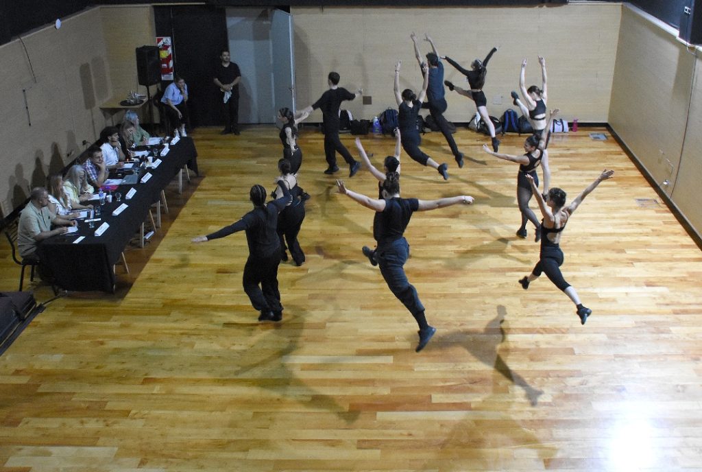 El proceso se inició con la acreditación en grupos de 12 participantes. Luego, monitores especializados enseñaron una secuencia coreográfica que los bailarines trabajaron de manera reiterada preparándose para la instancia evaluativa.